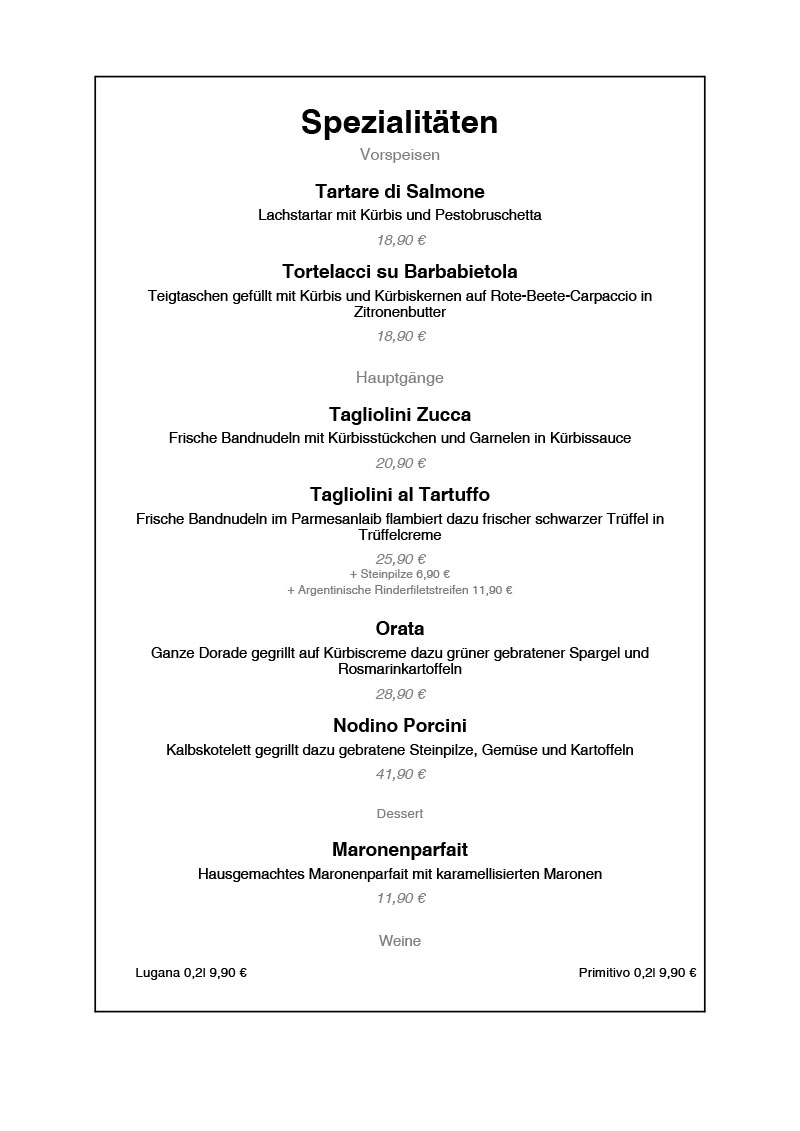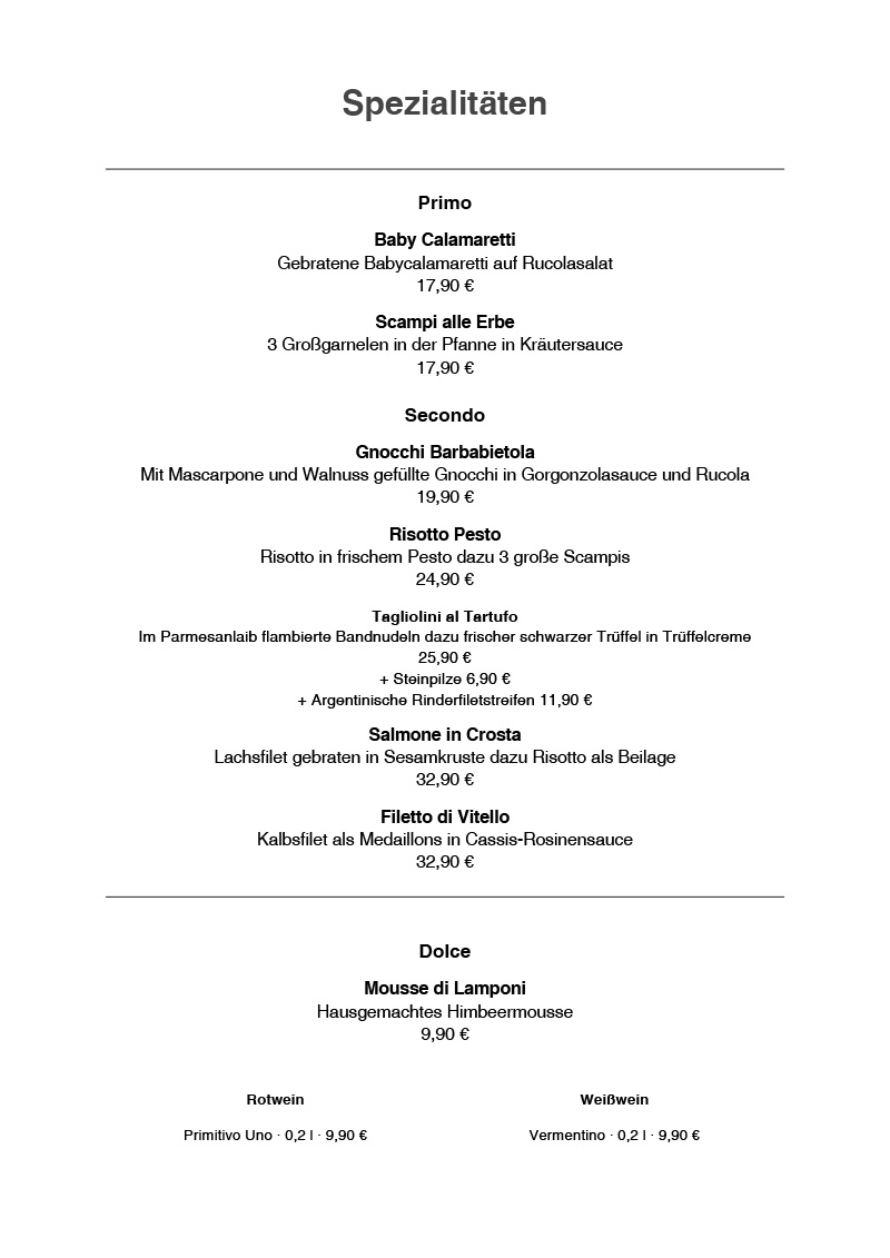 Wir begrüßen Sie auf unserer Webseite. Wir sind Ihr italienisches Restaurant in Berlin - Wilmersdorf. Wir erwarten Ihre Wünsche und werden alle Speisen mit frischen Zutaten und nach leckeren italienischen Rezepten zubereiten. Wir legen viel Wert auf die Qualität unserer Produkte und Speisen. Wir freuen uns Ihnen unsere italienischen Spezialitäten zu servieren und unsere ausgewählten Weine.